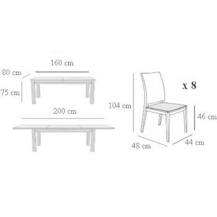 - w skład zestawu wchodzą stół + osiem krzeseł