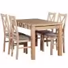 Zestaw Samuel składa się z czterech krzeseł oraz stołu o wymiarach 120x80x77 cm. Jest świetną propozycją dla osób ceniących solidne wykończenie, a zarazem klasyczny wystrój wnętrz. Blat wykonany jest z płyty meblowej laminowanej w kolorze dąb sonoma, która podkreśli styl niejednego pomieszczenia. Sprawdzi się zarówno w przytulnej kuchni oraz wygodnej jadalni. Będzie idealnym rozwiązaniem podczas spotkań rodzinnych, imprez okolicznościowych oraz w trakcie codziennego użytkowania, w zależności od indywidualnych potrzeb. Krzesła posiadają tapicerowane tkanina siedziska. Wymiary krzesła to 40x40x95.