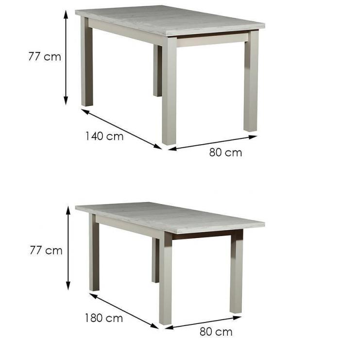 Zestaw stół i krzesła Selena 1+6 ST28+W119 dąb craft biały to elegancki stół z ładnym wykończeniem o wysokości 77 cm, szerokości 80 cm i długości 180 cm (po rozłożeniem). Nośność (kg):100 Doskonale sprawdzi sie w jadalni, pokoju dziennym, a także w kuchni.