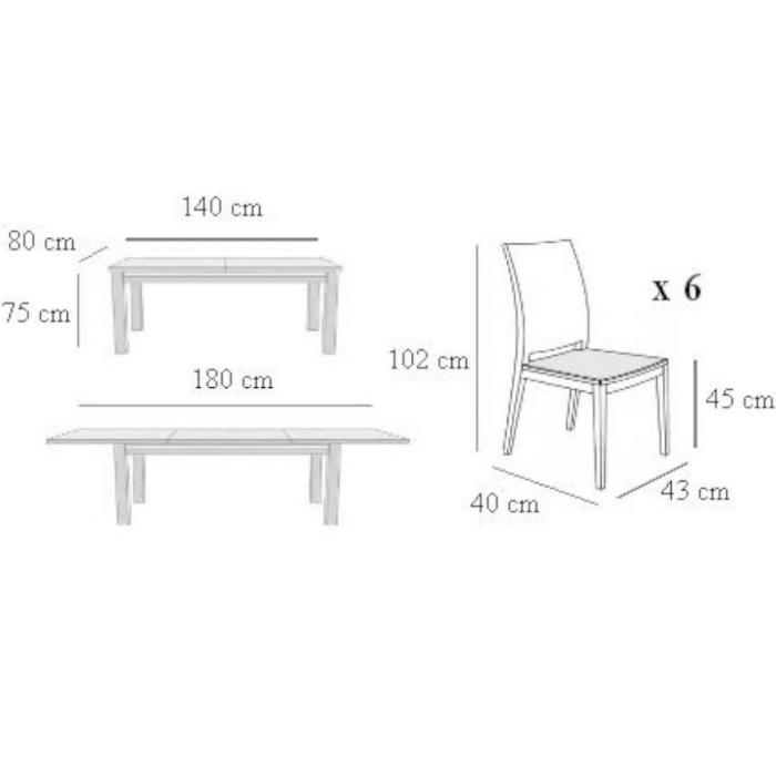 Zaletą stołu jest to, że jest rozkładany, co pozwala dostosować wielkość stołu do liczby gości. Siedzisko krzeseł zostało wypełnione pianką, co zapewnia komfort podczas długich posiłków. Zastosowany materiał ekoskóra jest łatwy do utrzymania w czystości i elegancki w wyglądzie. Ciemne, drewnopodobne wybarwienie zestawu nadaje wyjątkowy, klasyczny charakter. Materiał wykonania to drewno z okleiną naturalną, co gwarantuje trwałość i solidność mebli.