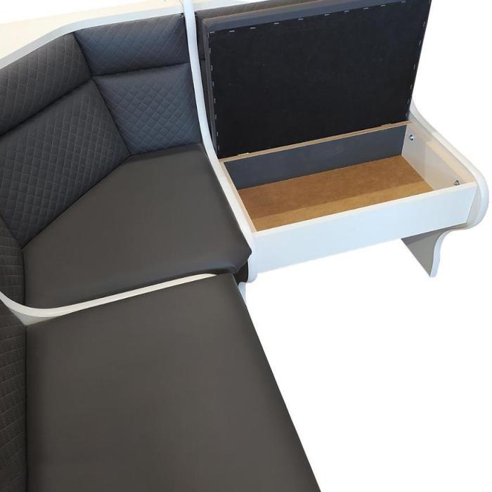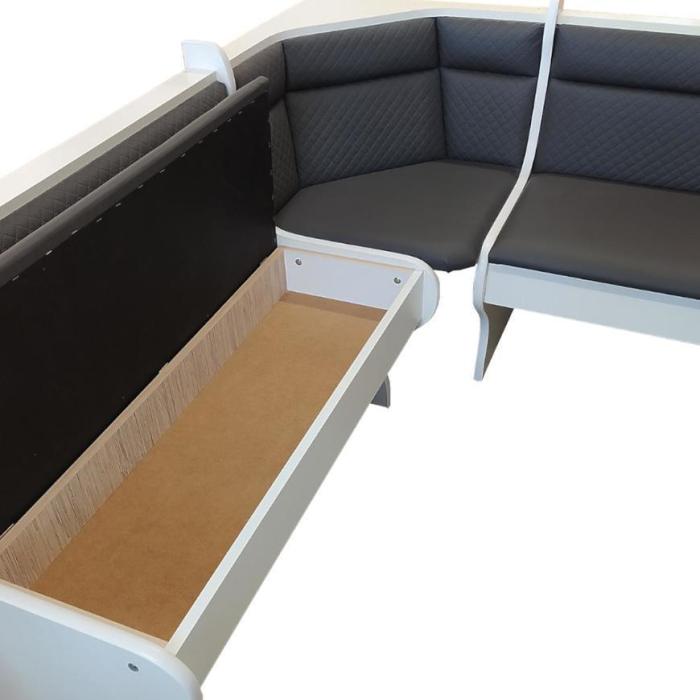 Ten model to idealne połączenie komfortu, trwałości i nowoczesnego designu. Narożnik wykonany z solidnych materiałów i eleganckiej ekoskóry wprowadza do kuchni stylowy, przytulny charakter, zapewniając wygodę na co dzień i podczas spotkań z rodziną czy znajomymi.