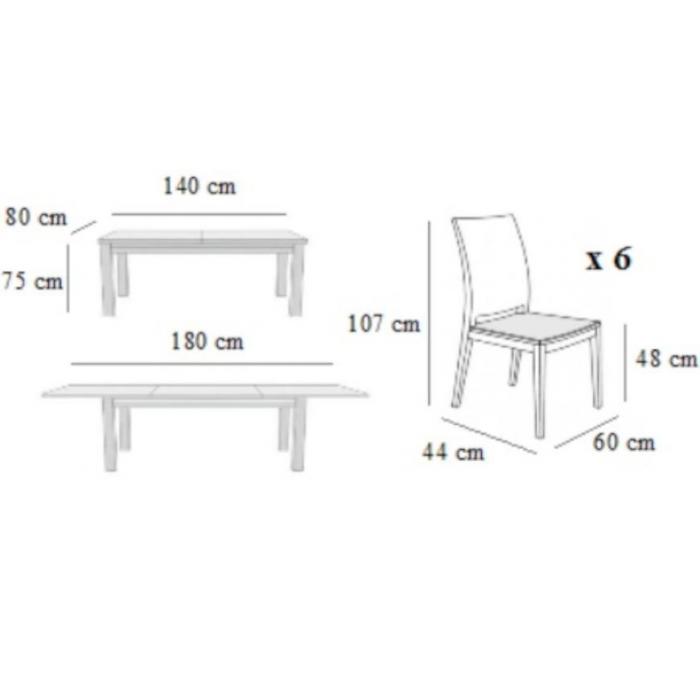 Zestaw Stół i Krzesła Weronika 1+6 to propozycja dla osób ceniących funkcjonalne i eleganckie meble do jadalni. Stół o prostokątnym blacie w wybarwieniu ciemnego drewna i głębokim kasztanowym kolorze wyróżnia się estetyką oraz solidnym wykonaniem z drewna i płyty laminowanej. Jego wymiary 80 cm szerokości i 75 cm wysokości zapewniają komfort podczas codziennych posiłków. Dodatkowo stół jest rozkładany – przed rozłożeniem mierzy 140 cm, a po rozłożeniu 180 cm, dzięki czemu łatwo pomieści więcej gości podczas rodzinnych spotkań.