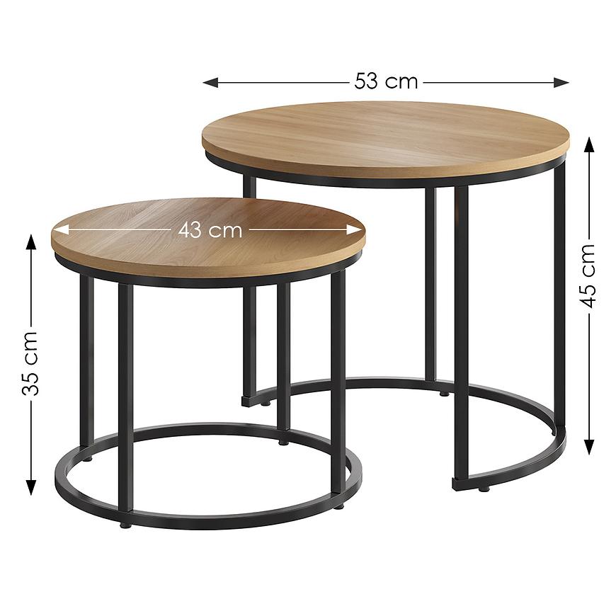 Zestaw stolików Dalia Octoni w dekorze dąb artisan to doskonałe połączenie nowoczesnego designu z funkcjonalnością, idealnie wpisujące się w industrialny styl wnętrz. Zestaw składa się z dwóch stolików o różnych wymiarach: 43x35 cm oraz 53x45 cm, co daje wiele możliwości aranżacyjnych i pozwala na swobodne dostosowanie ich do potrzeb wnętrza.