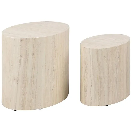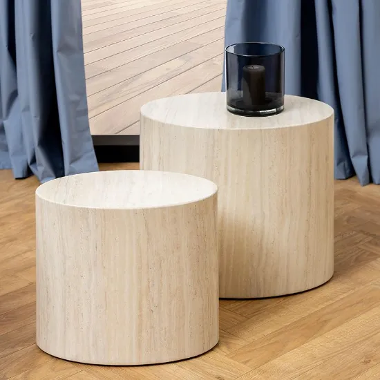 Dodaj elegancję i praktyczność do swojego wnętrza dzięki zestawowi stolików w kolorze trawertyn.