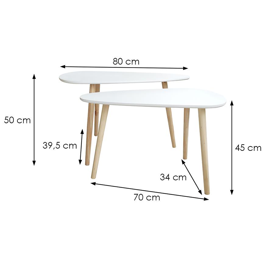 Zestaw składa się z dwóch stolików o wymiarach 80/50 i 70/40 cm, co pozwala na elastyczne ustawienie i dostosowanie ich do indywidualnych preferencji. Ich kształt nadaje całości lekkości i subtelności, jednocześnie zachowując nowoczesną estetykę.