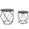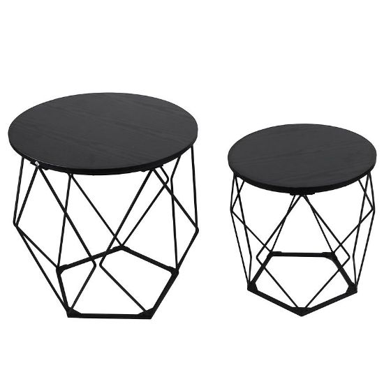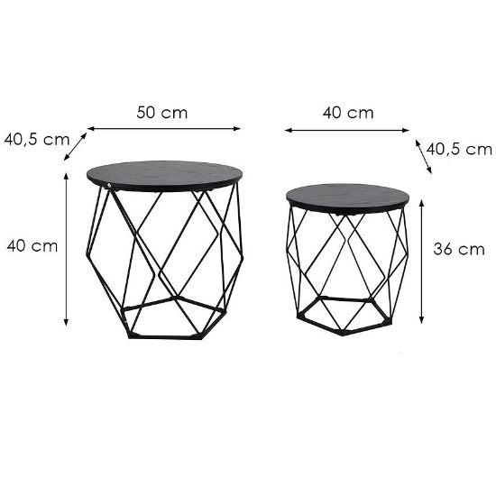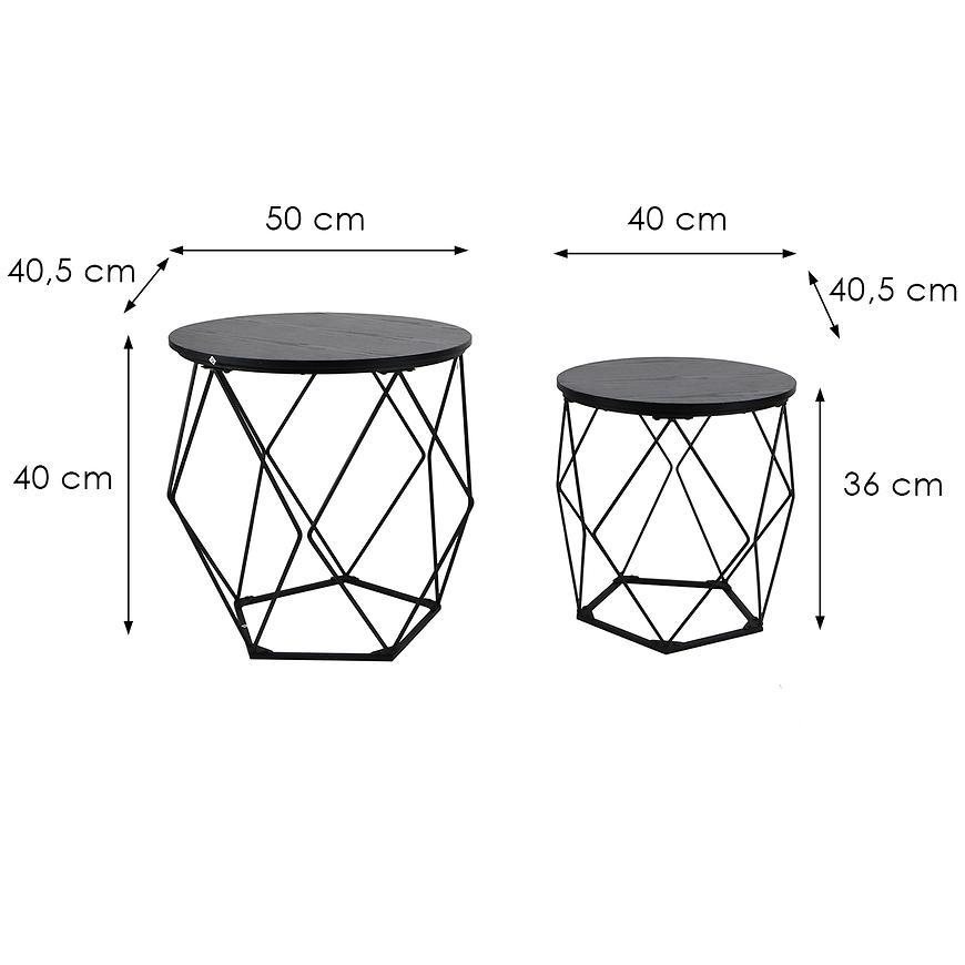 Zestaw stolików Loft w kolorze czarnym o wymiarach 40x40,5x36 cm i 40,5x50x40cm to doskonałe połączenie funkcjonalności z nowoczesnym designem, które idealnie wpisuje się w loftowy styl. Charakteryzują się minimalistyczną formą, która sprawia, że są one niezwykle uniwersalne i pasują do różnych aranżacji wnętrz.