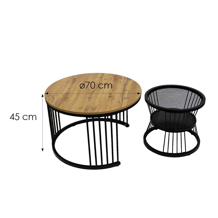 Połączenie jasnego drewna z czarnym metalem tworzy kontrast, który podkreśla nowoczesny charakter stolików, jednocześnie zachowując klasyczny, ponadczasowy wygląd. Matowe wykończenie blatu dodaje stolikom elegancji, a prosty, minimalistyczny design sprawia, że zestaw będzie pasował do różnych stylów wnętrz – od klasycznych po loftowe.