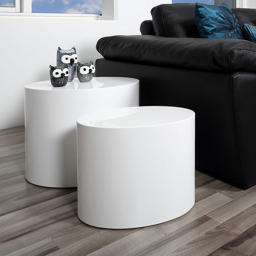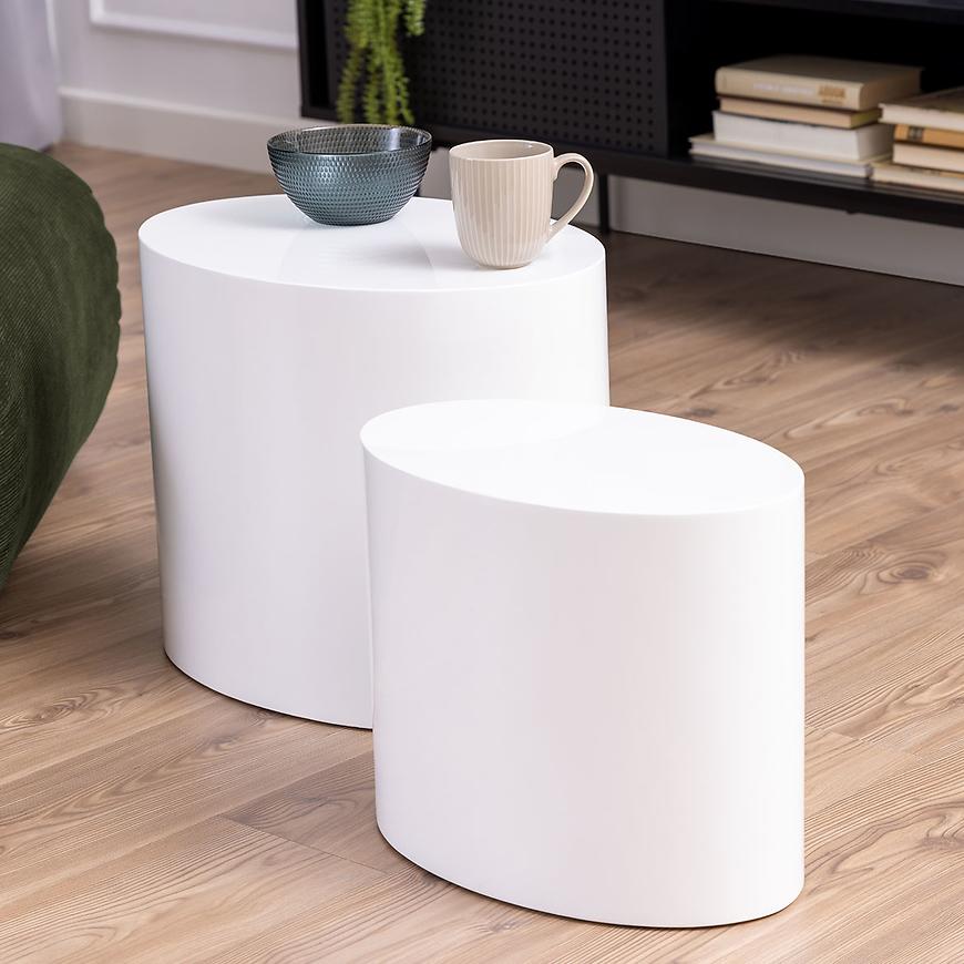 Dodaj elegancję i praktyczność do swojego wnętrza dzięki zestawowi stolików w kolorze białym.