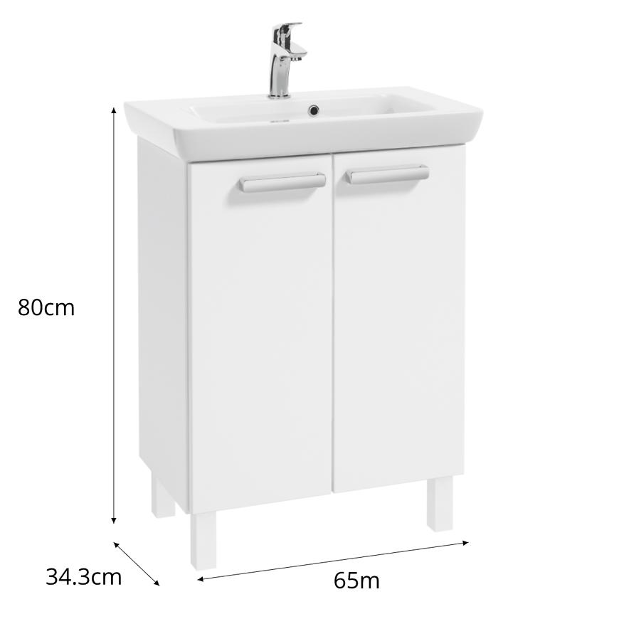 Zestaw szafka z umywalką CAPRI D65 2D0S biały z kolekcji CAPRI to funkcjonalna i stylowa szafka łazienkowa stojąca z umywalką w zestawie. Wykonana z płyty wiórowej z frontem i korpusem w białym lakierze, łączy elegancki wygląd z trwałością. Posiada 2-drzwiową szafkę z systemem samodomykania oraz uchwyty w komplecie, zapewniając wygodne przechowywanie akcesoriów. Produkt do samodzielnego montażu, idealny do każdej łazienki, wprowadzając lekkość i nowoczesny styl.