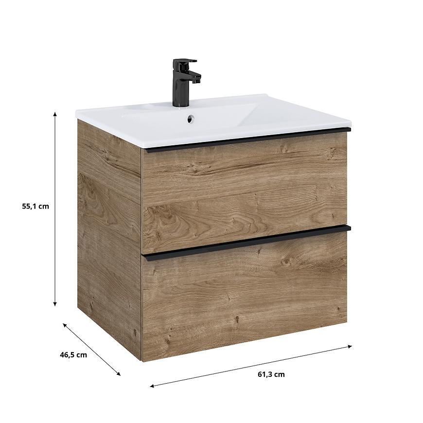 Zestaw szafka z umywalką Merkado 60 2S - połączenie funkcjonalności i nowoczesnego designu do Twojej łazienki. Wykonany z trwałej płyty wiórowej, ten zestaw łączy solidność z estetyką.