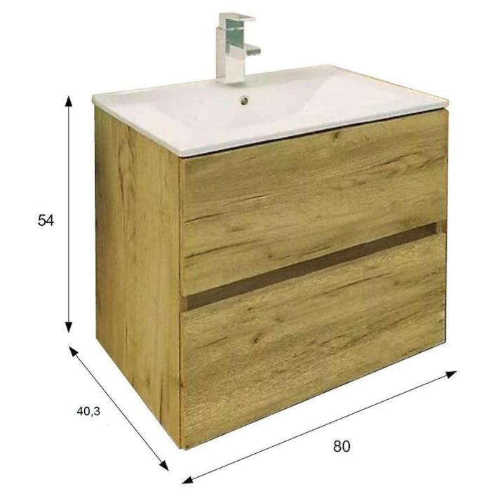 Zestaw szafka z umywanlką z kolekcji Momo to elegancki mebel, który świetnie wpisze się w nowoczesne wnętrza. Meble wykonane są z wysokiej jakości materiałów - płyty wiórowej w kolorze złotego dębu. Meble dodatkowo wyposażone są w system samodomykania co zwiększa komfort użytkowania.