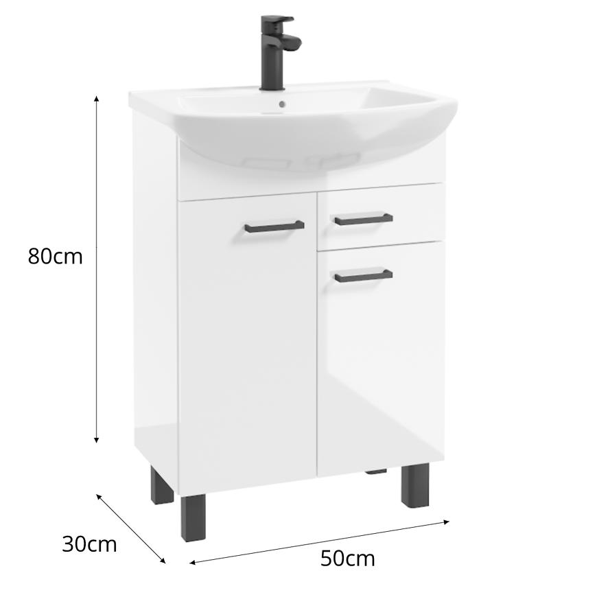 Zestaw szafki z umywalką NOVELTY D50 2D1S biała to propozycja, która łączy w sobie funkcjonalność i nowoczesny design, idealna dla Twojej łazienki.