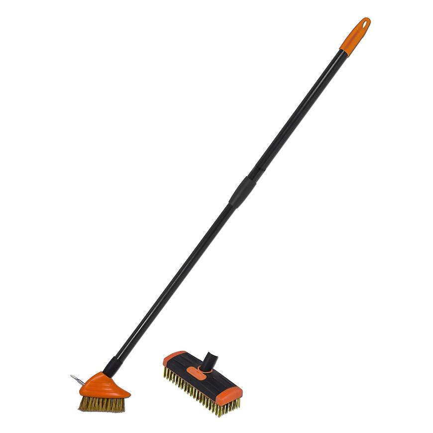 Zestaw szczotek drucianych to idealne rozwiązanie do kompleksowej pielęgnacji powierzchni brukowych. W skład zestawu wchodzą dwie szczotki druciane – jedna przeznaczona do skutecznego usuwania mchu i trawy z fug kostki brukowej, a druga do ogólnej pielęgnacji nawierzchni. Dzięki teleskopowemu trzonkowi o regulowanej długości od 80 do 140 cm prace są wygodne i dostosowane do potrzeb użytkownika. Ten praktyczny zestaw szczotek drucianych pozwala utrzymać bruk w doskonałym stanie, zapewniając trwałość i estetyczny wygląd na długie lata.