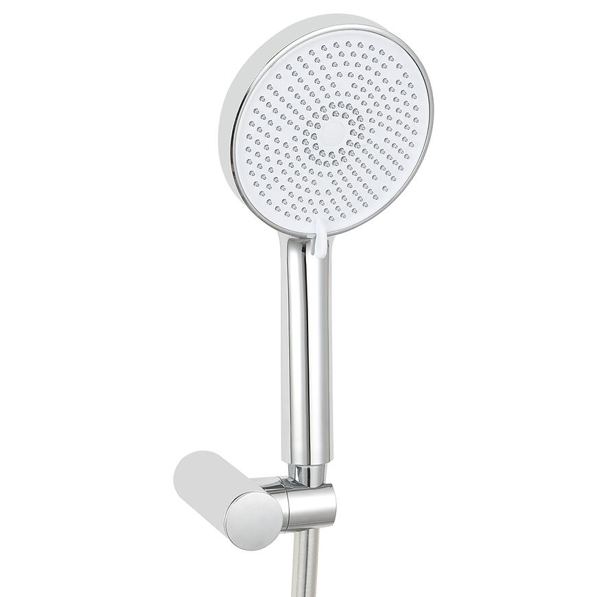 Rączka natryskowa z tworzywa sztucznego oraz wąż PVC zapewniają odporność na korozję, łatwe utrzymanie w czystości i długotrwałe użytkowanie. Chromowane wykończenie nadaje łazience nowoczesny i elegancki charakter.