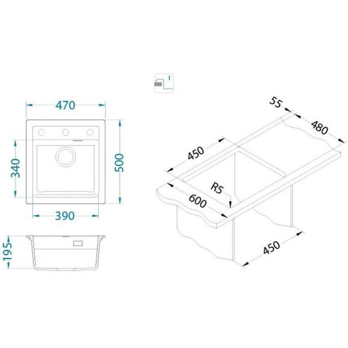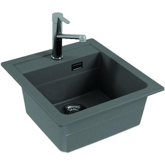 Zlew jednokomorowy ATROX 20 w kolorze szarym. Wykonany z granitalu. Posiada automatyczny korek.
