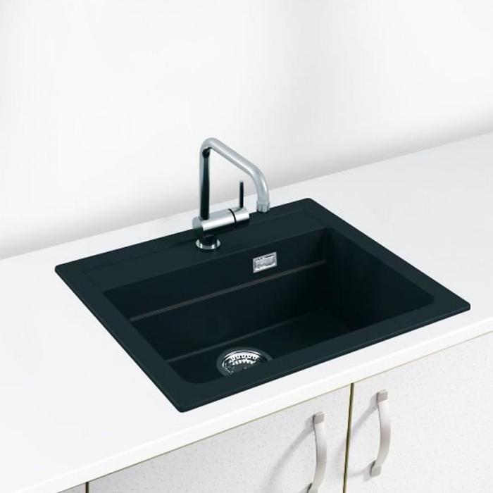 Zlew jednokomorowy ATROX 30 w kolorze czarnym. Wykonany z granitalu. Posiada automatyczny korek.
