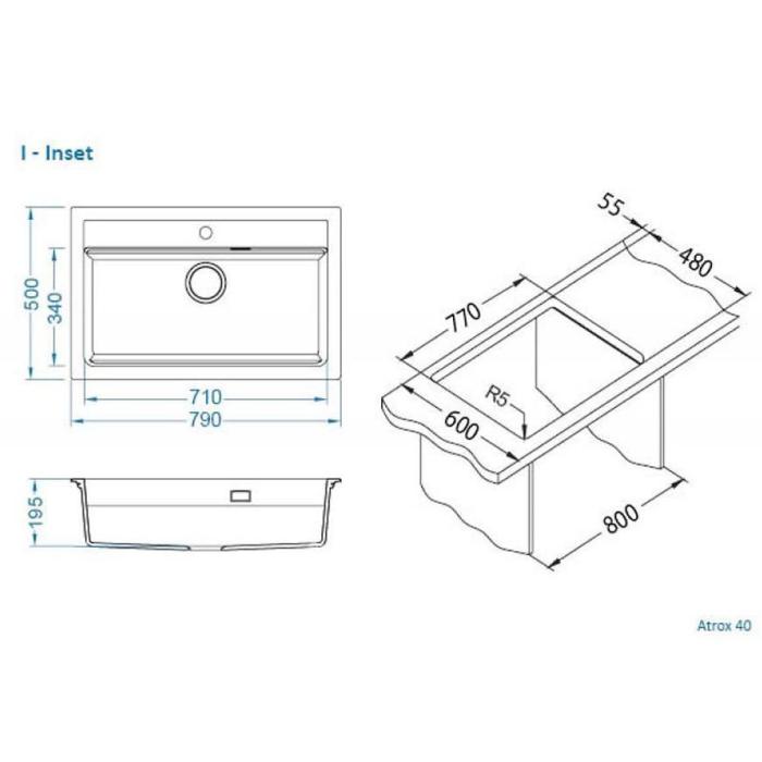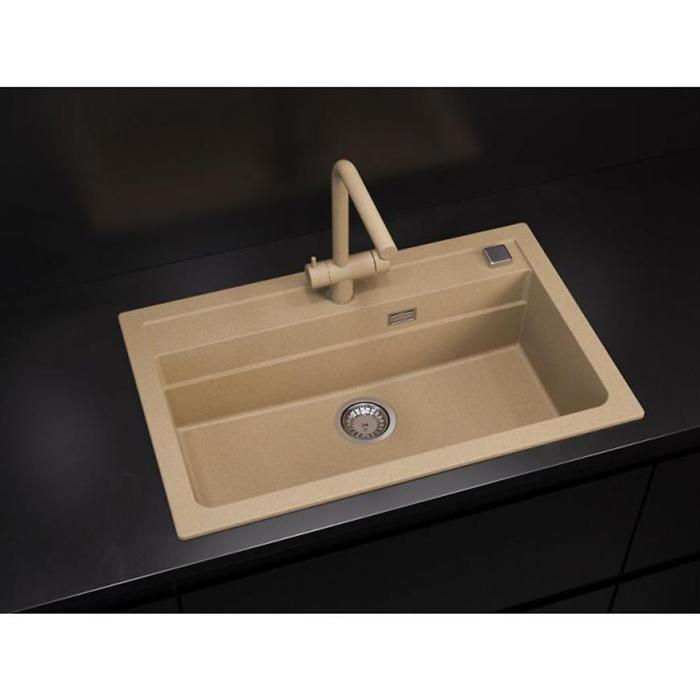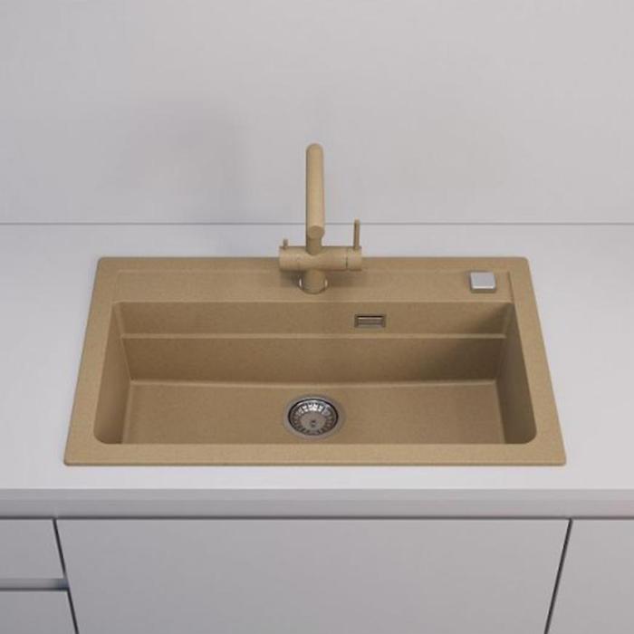Zlew jednokomorowy ATROX 40 w kolorze beżowym. Wykonany z granitalu. Posiada automatyczny korek.