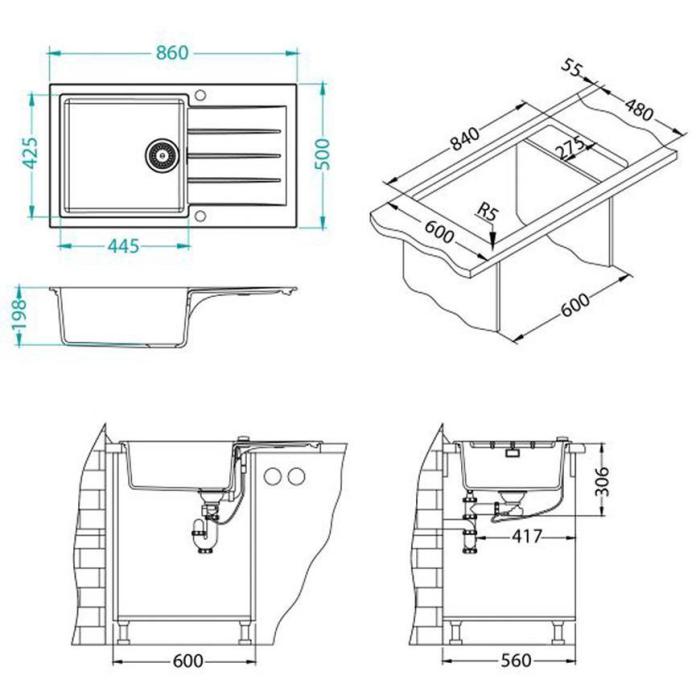 Zlew jednokomorowy CADIT 40 w kolorze czarnym. Wykonany z granitalu. Posiada automatyczny korek.
