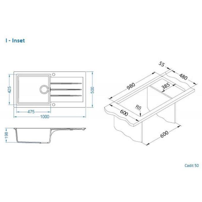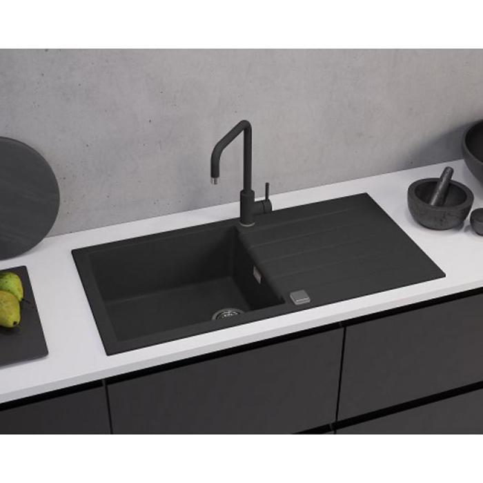 Zlew jednokomorowy CADIT 50 w kolorze czarnym. Wykonany z granitalu. Posiada automatyczny korek.
