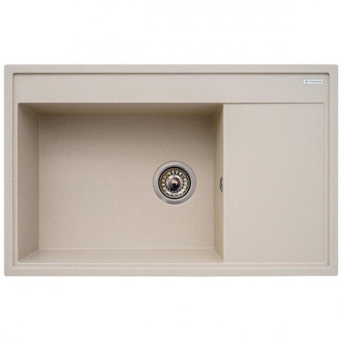 Zlew Camea 790X500X210 marki PYRAMIS w kolorze beż piaskowy to połączenie elegancji, funkcjonalności i trwałości. Wykonany z wysokiej jakości granitu, stanowi praktyczny i stylowy element nowoczesnej kuchni. Jego subtelny odcień beżu doskonale komponuje się z blatami w naturalnych barwach, tworząc ciepłe i przytulne wnętrze.