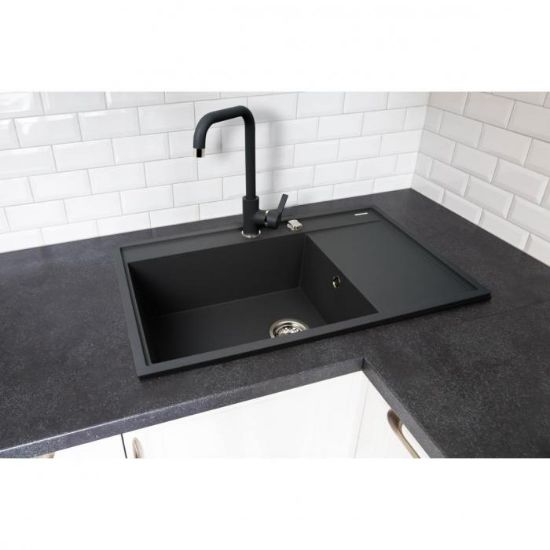 Granitowa konstrukcja zapewnia odporność na zarysowania, wysoką temperaturę i uderzenia, a jednocześnie ułatwia utrzymanie zlewu w czystości. Elegancki kolor karbon nadaje wnętrzu nowoczesnego wyrazu, a matowa powierzchnia prezentuje się estetycznie przez wiele lat.