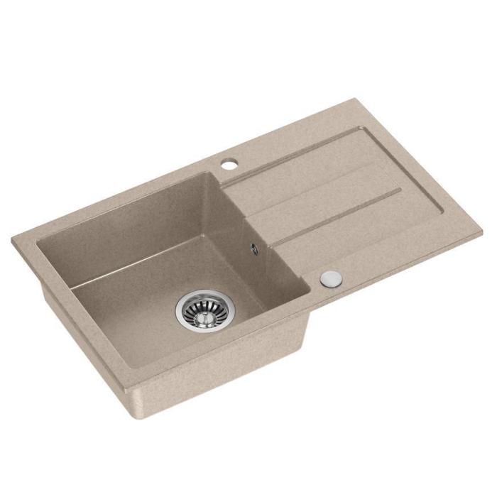 Zlew jednokomorowy Christian wykonany z granitu w kolorze beżowym. Jest odwracalny.