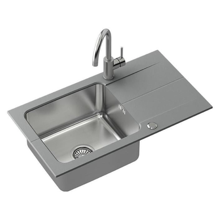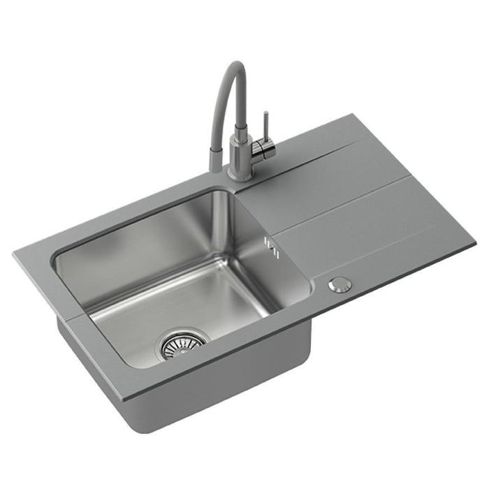 Zlew jednokomorowy Edward wykonany ze stali/granitu w kolorze szarym. Jest odwracalny.