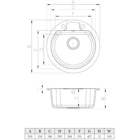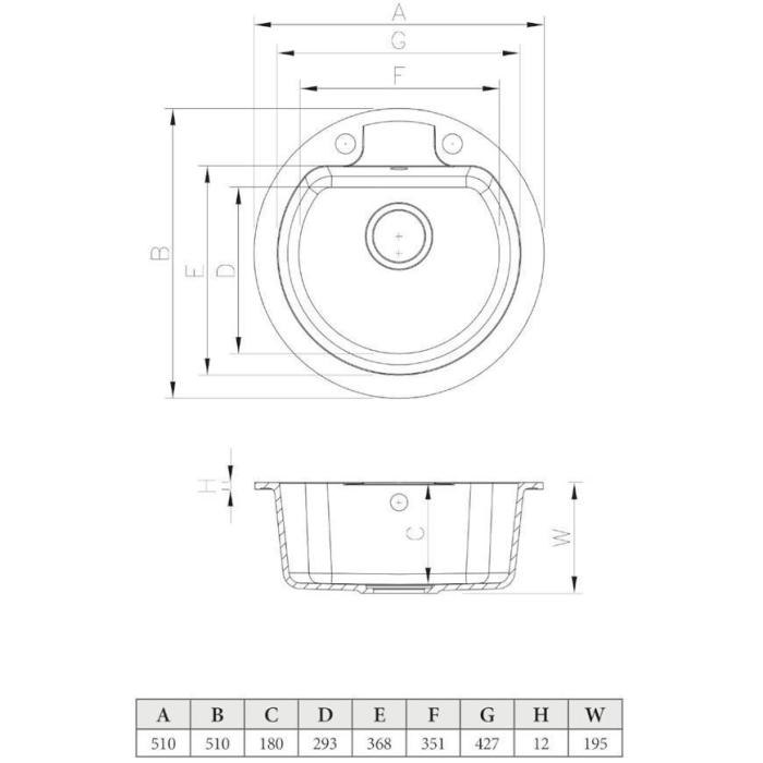 Zlew posiada jedną komorę o wymiarach 427x351x180 mm, co pozwala wygodnie myć naczynia i przygotowywać posiłki nawet w mniejszych kuchniach. Kompaktowa forma (510x510 mm) sprawia, że zlew doskonale sprawdza się w ograniczonej przestrzeni, zachowując pełną funkcjonalność.