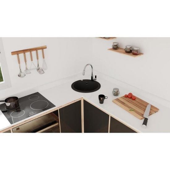 Okrągła komora i matowa powierzchnia zlewu nadają kuchni nowoczesny i stylowy wygląd. Zlew Granitowy 1K 510x510 Czarny to idealny wybór do kuchni, w których liczy się zarówno funkcjonalność, jak i elegancki design.