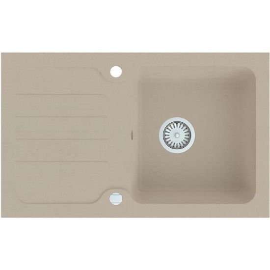 Zlew Granitowy 1K 780x480 marki AQUA MERCADO to eleganckie i praktyczne wyposażenie nowoczesnej kuchni. Wykonany z trwałego granitu w ciepłym, beżowym kolorze, doskonale łączy wytrzymałość z estetyką. Jego klasyczny, prostokątny kształt i uniwersalny design sprawiają, że pasuje zarówno do wnętrz nowoczesnych, jak i tradycyjnych.