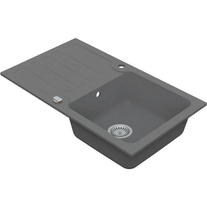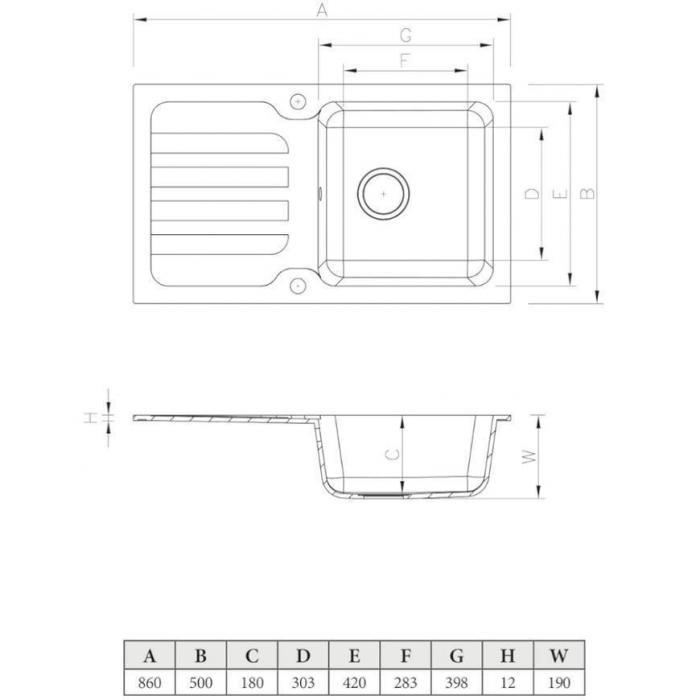 Zlew Granitowy jednokomorowy wpuszczany z ociekaczem, w zestawie korek automatyczny, odwracalny.