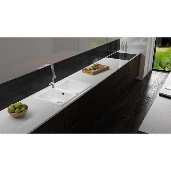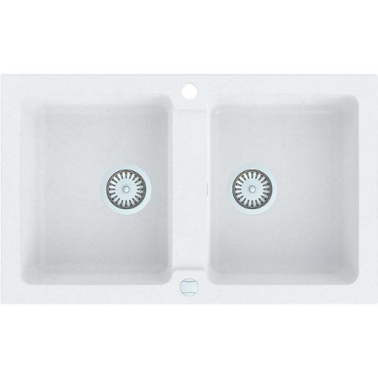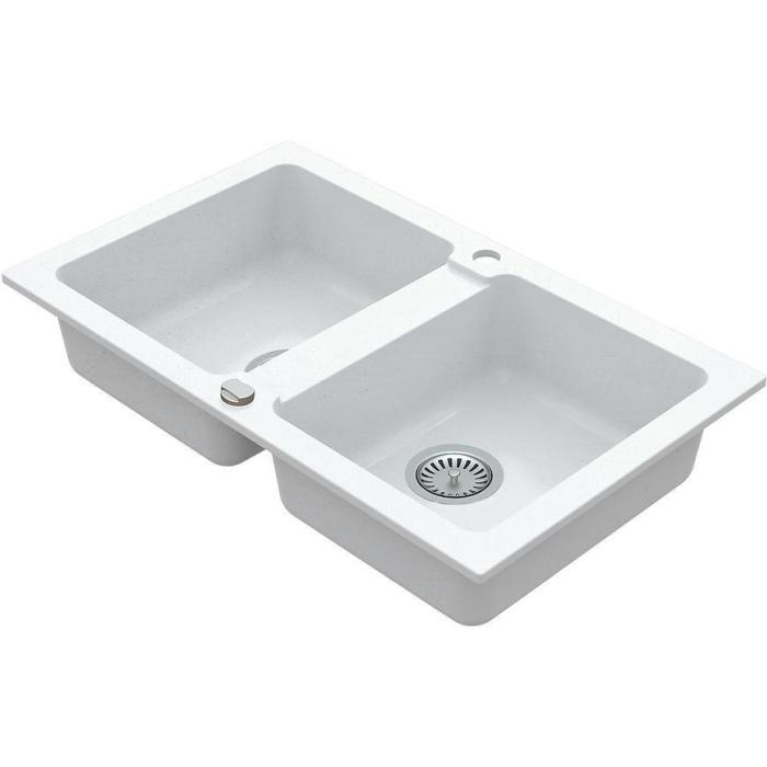 Zlew Granitowy dwukomorowy wpuszczany, w zestawie korek automatyczny, odwracalny. Wymiary komór 29,4x37,4x14,5 i 29,4x37,4x14,5 cm.