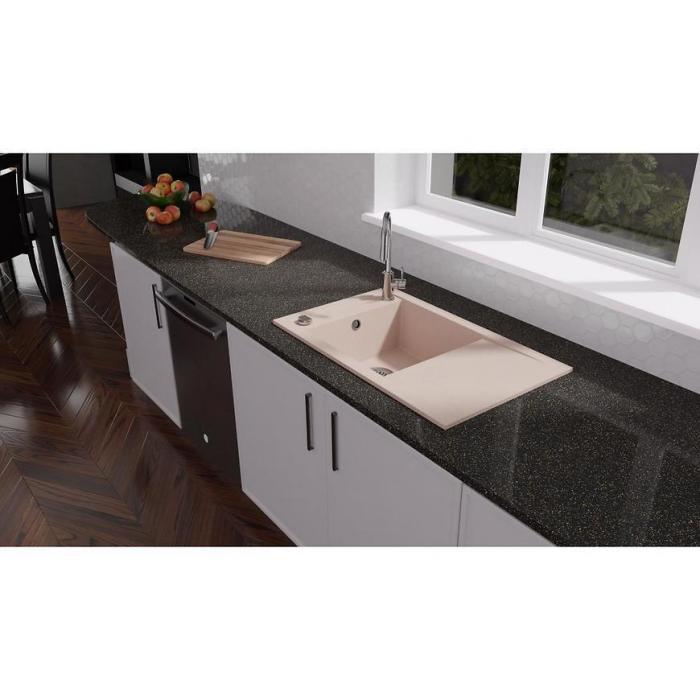 Zlew Granitowy jednokomorowy wpuszczany z ociekaczem, w zestawie korek automatyczny, odwracalny.