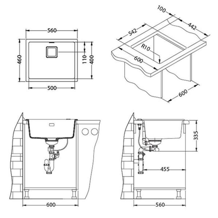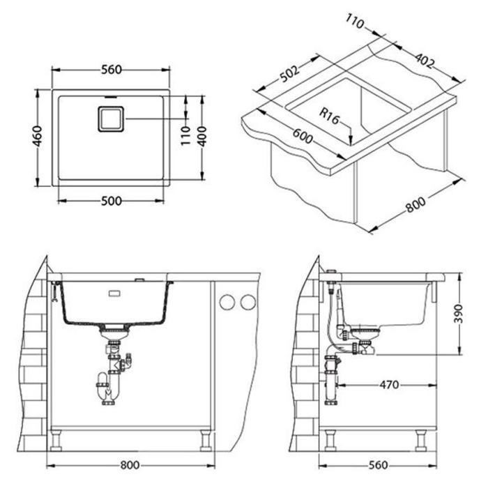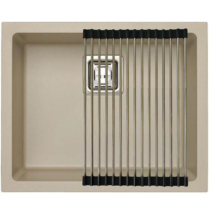 Zlew jednokomorowy Quadrix wykonany z granitalu w kolorze peble. Posiada automatyczny korek.