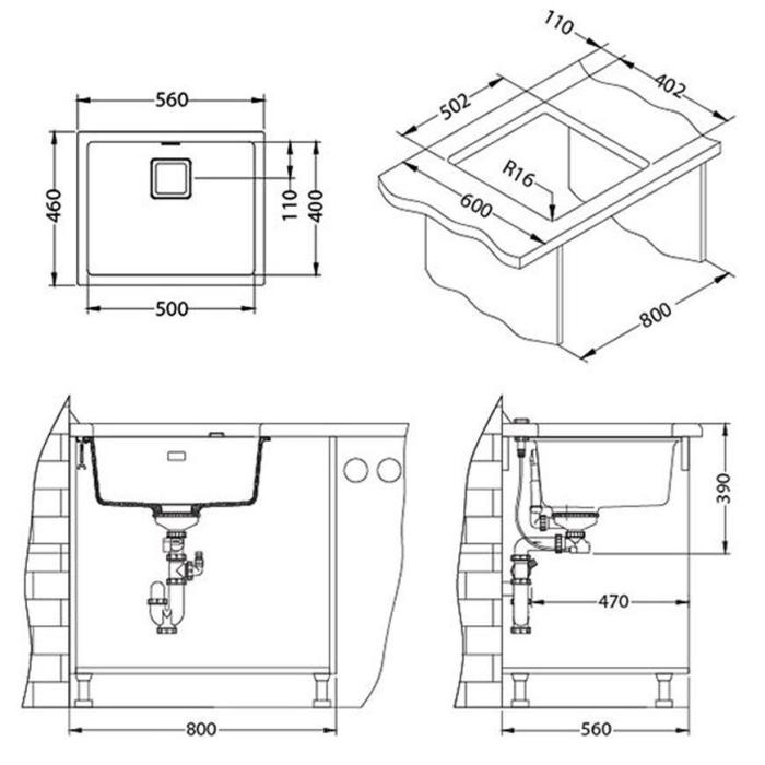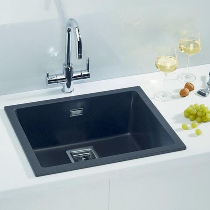 Zlew jednokomorowy Quadrix wykonany z granitalu w kolorze twilight. Posiada automatyczny korek.