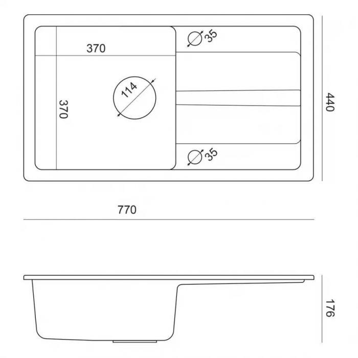 Pojedyncza, głęboka komora o głębokości 176 mm gwarantuje komfort podczas codziennych prac kuchennych. Odwracalna konstrukcja umożliwia montaż ociekacza po lewej lub prawej stronie, co pozwala dopasować zlew do układu kuchni.