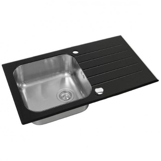 Zlew szklany Venom czarny 780x435 z syfonem to idealny wybór dla osób, które cenią elegancję, trwałość i komfort użytkowania. Nowoczesna forma, połyskujące szkło i automatyczny korek sprawiają, że to praktyczne i stylowe rozwiązanie do każdej kuchni.