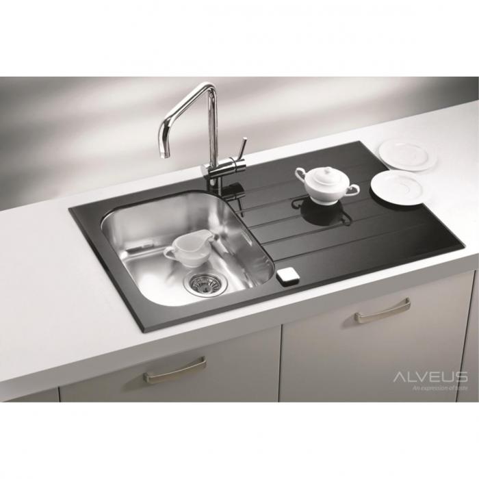 Zlew Venom wyróżnia się minimalistycznym designem oraz połyskującą powierzchnią z hartowanego szkła, która jest odporna na zarysowania, zabrudzenia i wysokie temperatury. Czarna barwa nadaje mu nowoczesny wygląd, doskonale komponując się z jasnymi blatami i stalowymi elementami wyposażenia.