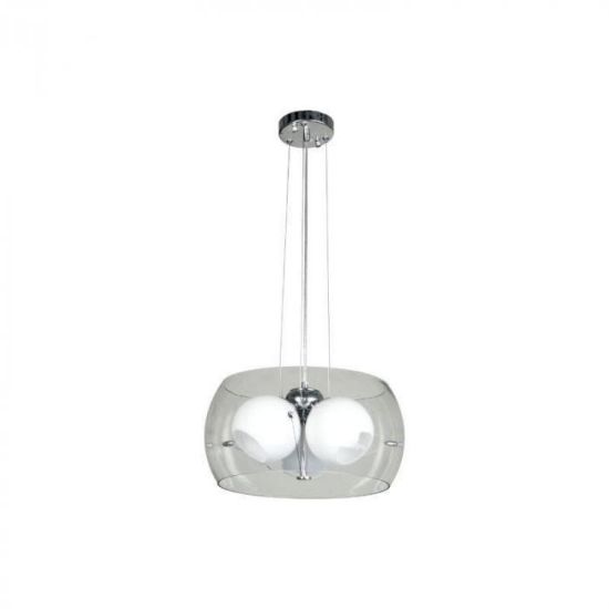 Modernistyczna lampa idealnie nadająca się nad stół do jadali bądź nad wyspę kuchenną. Szkło dodaje nowoczesności, a wewnętrzne klosze dobrze kierują światłem.