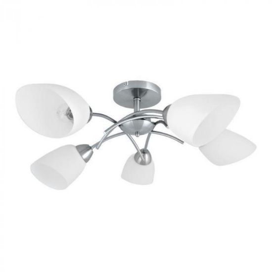 Żyrandol Viletta wygląda niezwykle nowocześnie. 5 żarówek w ściętym kloszu idealnie rozświetli i doda nowoczesności każdemu pomieszczeniu.